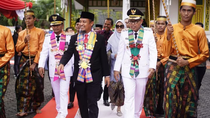 Gubernur Sulawesi Selatan Andi Sudirman Sulaiman, Menghadiri Serah Terima Jabatan Dari Pj. Bupati Bone Andi Winarno Eka Putra, Kepada Bupati Bone Andi Asman Sulaiman, didampingi Wakil Bupati Bone Andi Akmal Pasluddin.