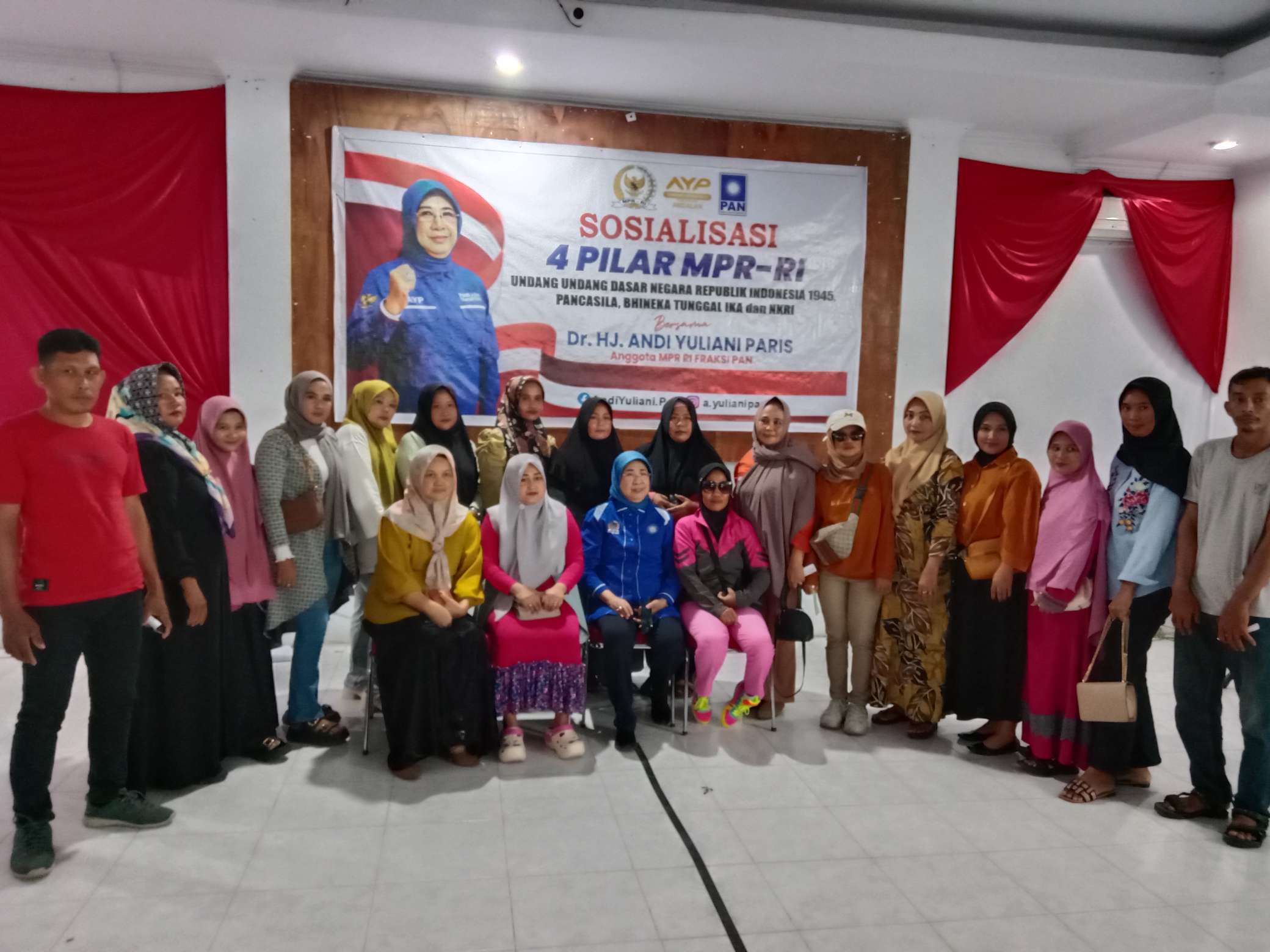 Dalam kegiatan tersebut, Andi Yuliani Paris menekankan pentingnya pemahaman dan pengamalan nilai-nilai kebangsaan yang terkandung dalam 4 Pilar MPR RI, yaitu Pancasila, Undang-Undang Dasar Negara Republik Indonesia Tahun 1945, Negara Kesatuan Republik Indonesia (NKRI), dan Bhinneka Tunggal Ika.