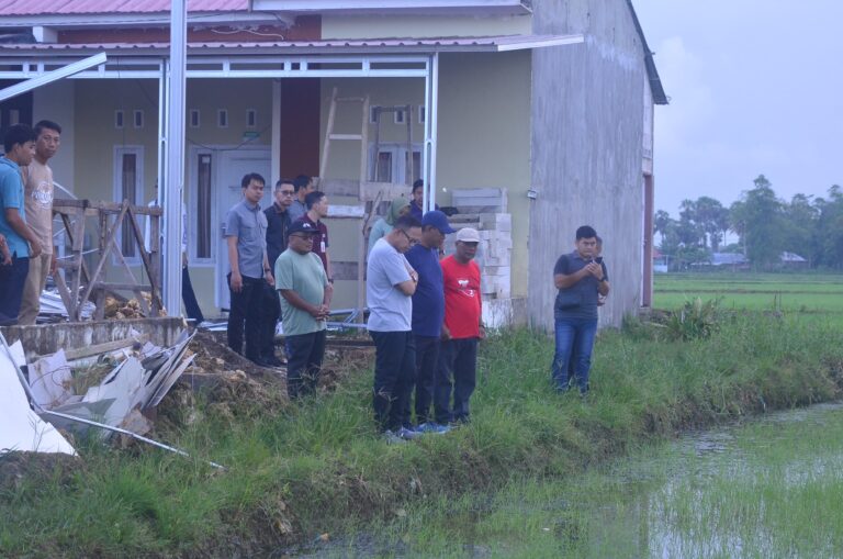 Wakil Bupati Bone Andi Akmal Pasluddin, didampingi Camat Tanete Riattang Andi Zainal Wahyudi, dan Lurah Bukaka Arifin, melakukan peninjauan ke lokasi pembuangan limbah di Perumahan Dirz Residence yang mengalir ke sawah warga di Kelurahan Bukaka, Kecamatan Tanete Riattang Kabupaten Bone. Jumat, 23 Mei 2025,